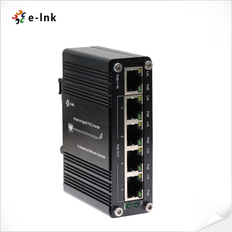 औद्योगिक 1-पोर्ट 802.3at PoE+ से 4-पोर्ट 802.3af/at गीगाबिट PoE एक्सटेंडर